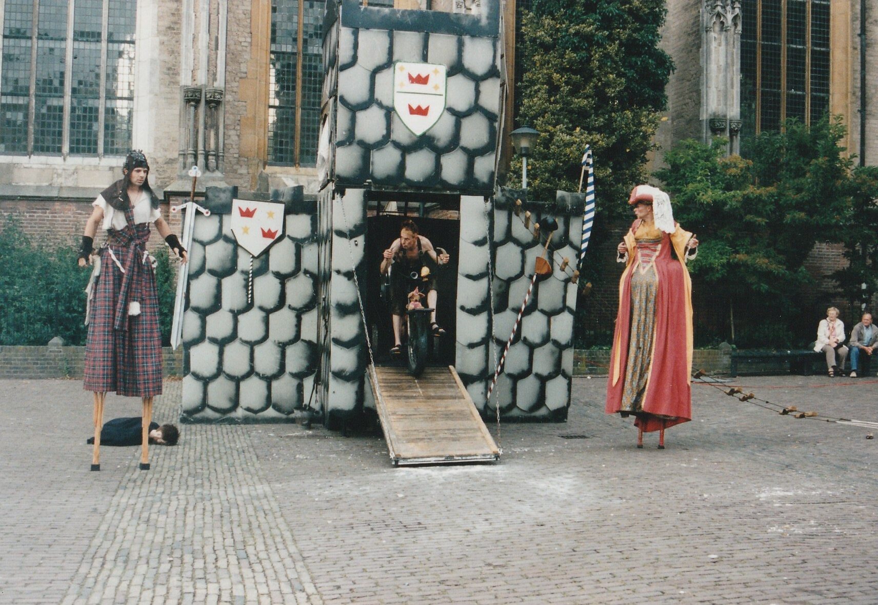 Een vuurspuwende draak, kanonschoten en het instortende kasteel zijn verrassingselementen. We spelen op stelten en natuurlijk is er de duivelse driewieler.